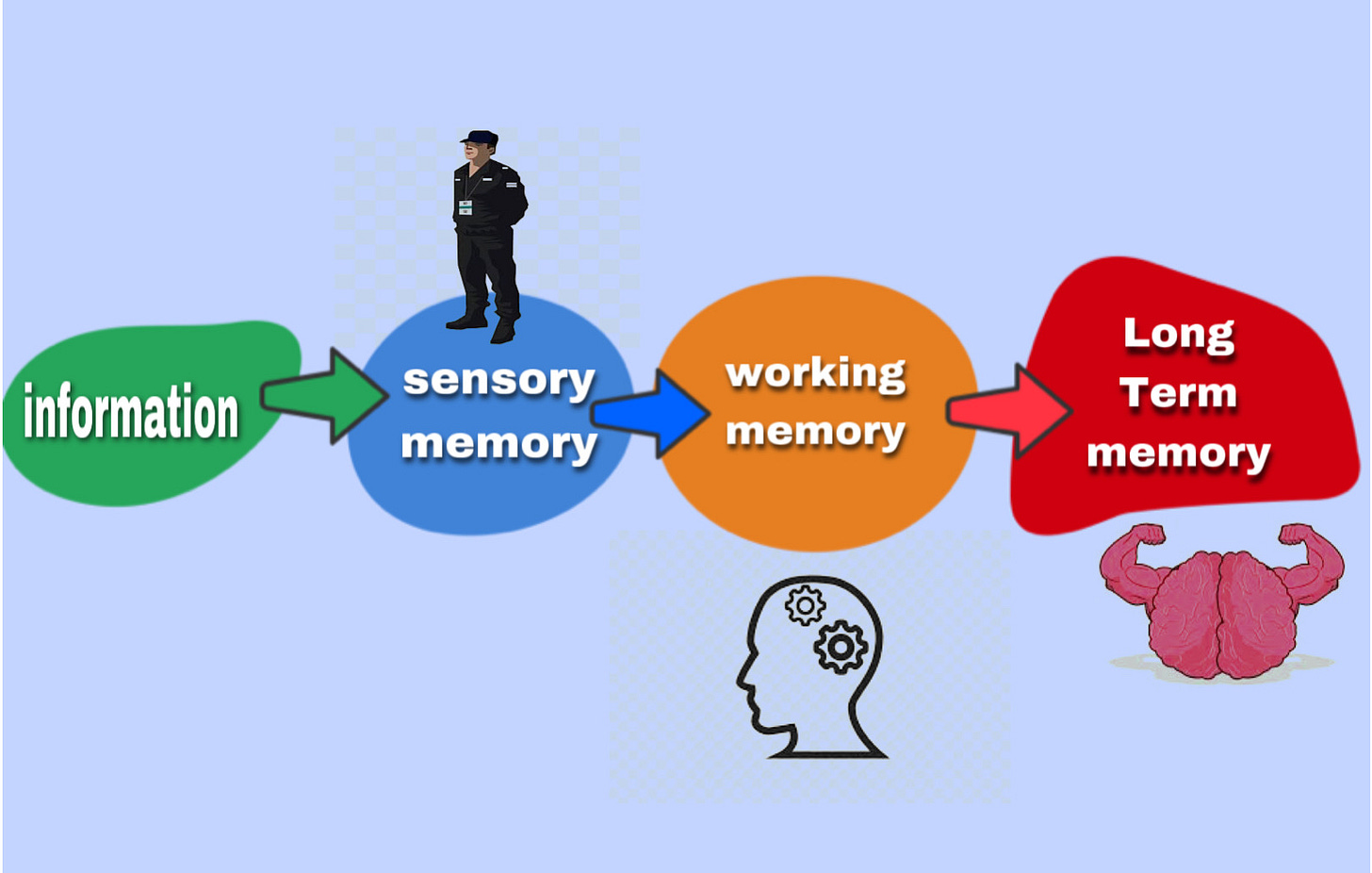 whenever an information gets inside our brain it actually goes to the sensory memory first, if the information seems relevant the sensory memory passes that to the Short Term Memory and if its not relevant then the sensory memory kinda deletes that.